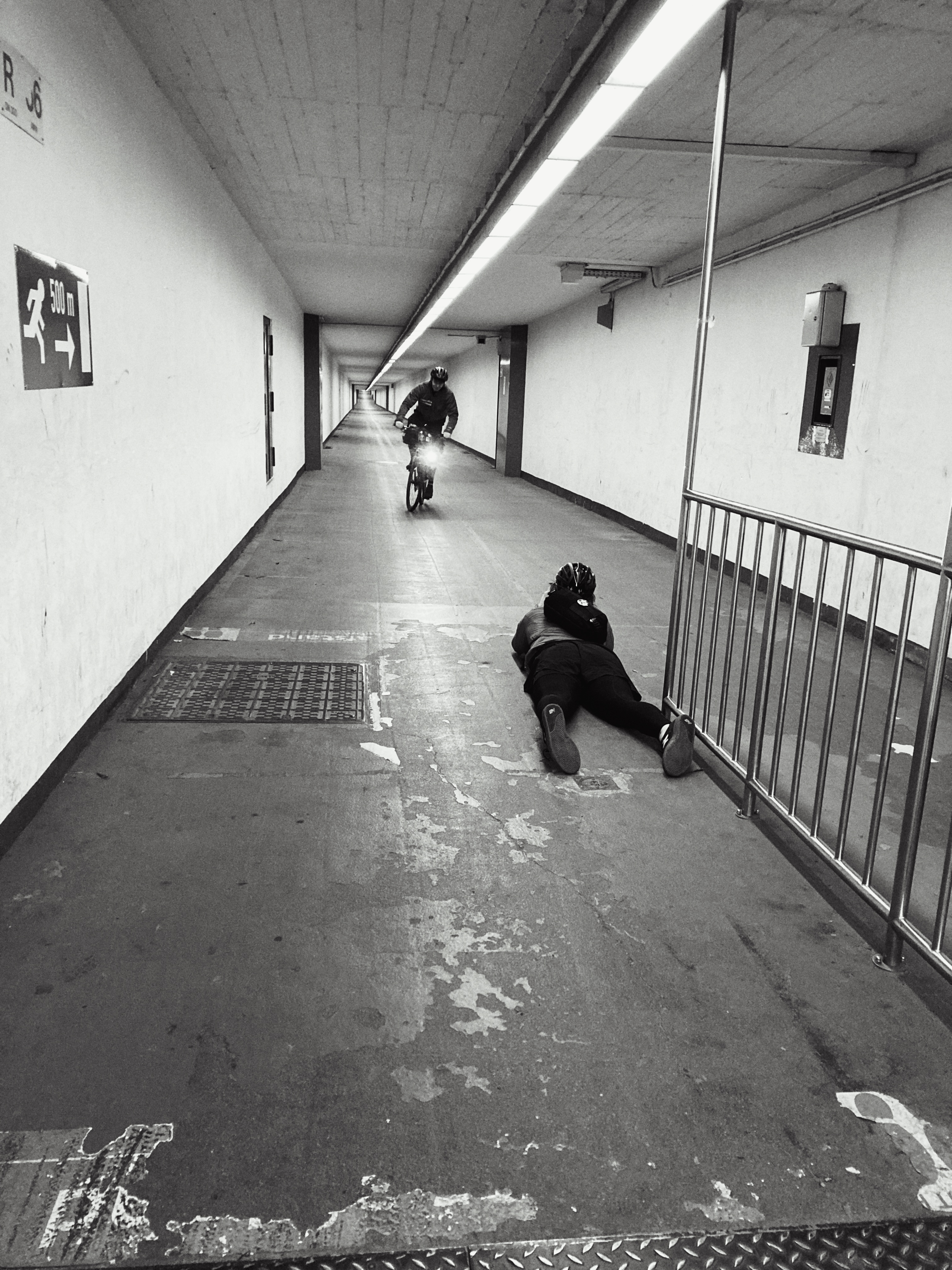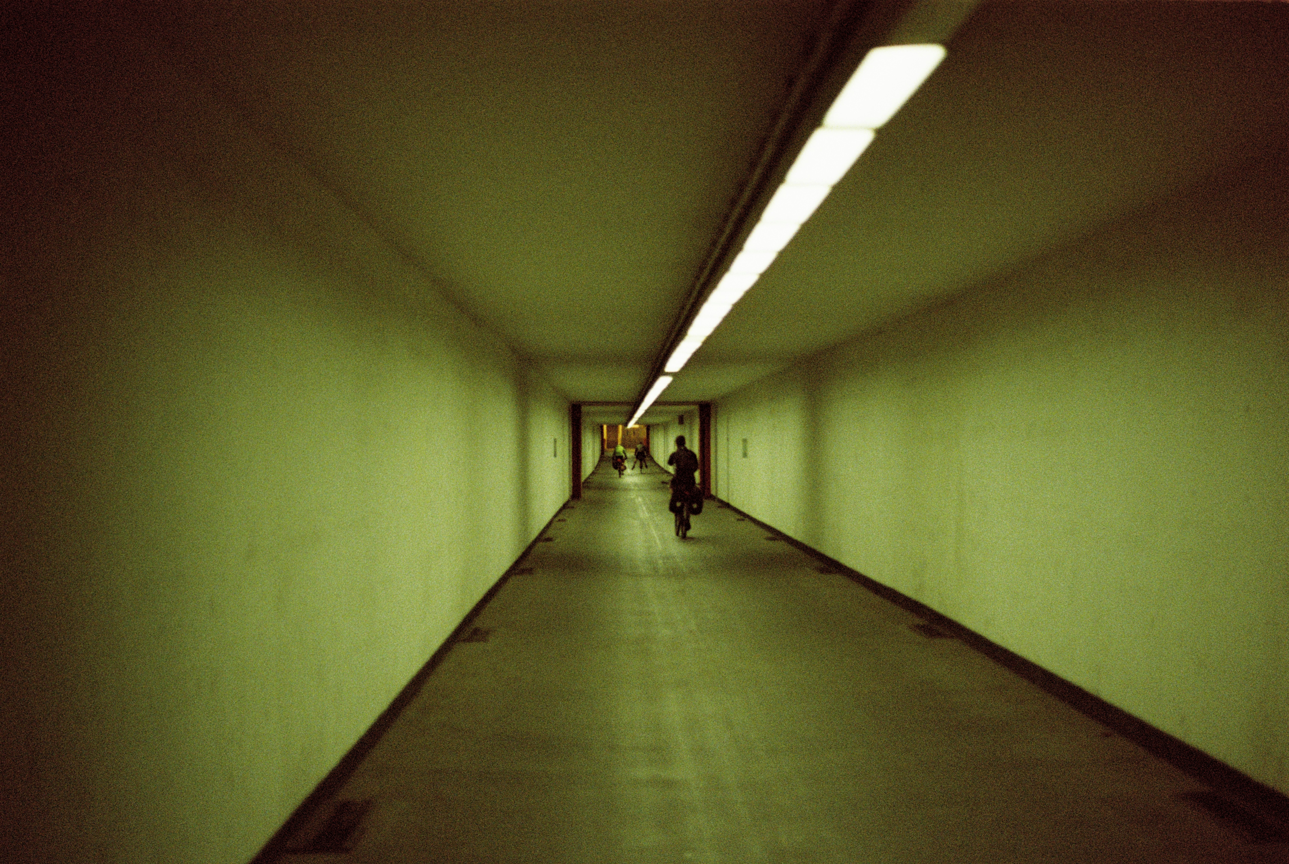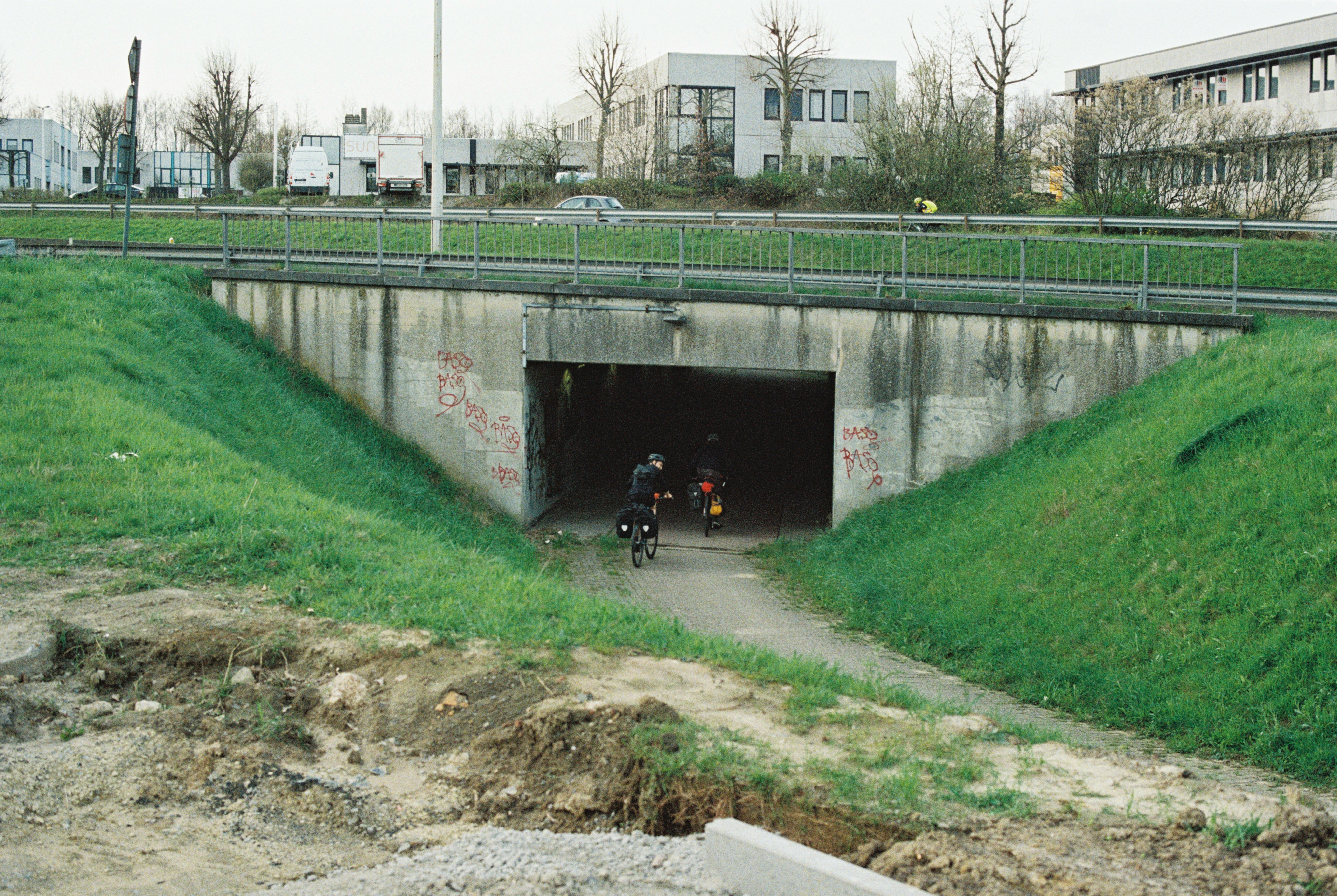Heinenoordtunnel. Looking at images now, it seems as though there was a separate tunnel for bikes. The road we followed had bike lane markings though, and we were so engrossed by the prospect of such a descent after days of Euclidian flatness that we didn’t stop to check. I’d been meaning to turn my wheel around to the 18t cog after getting accustomed to the terrain but kept forgetting. I wish i’d taken the chance to put my feet on the frame and coast it, especially since I had the front brake on. Alas… 49×22 had my knees bouncing off my elbows.