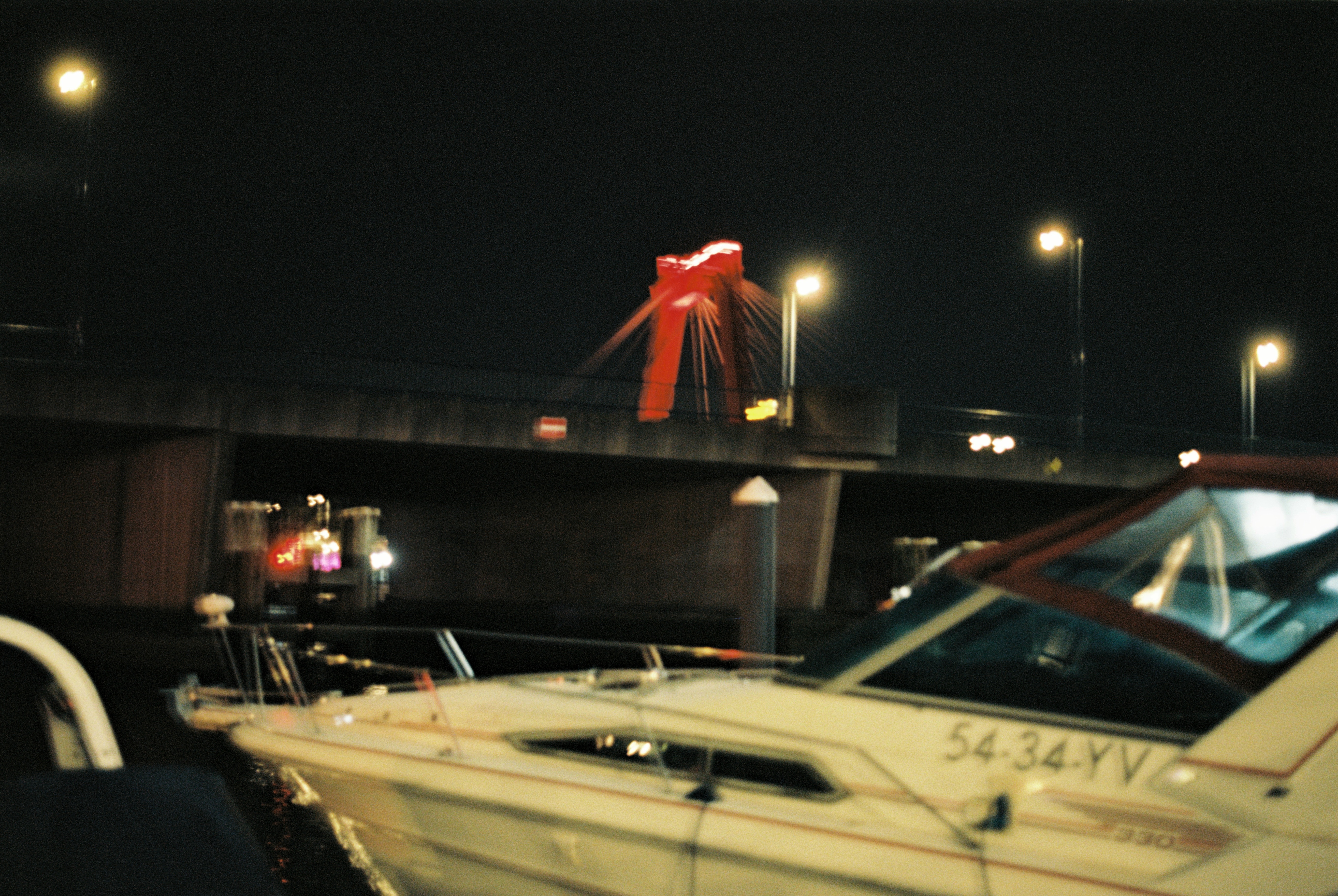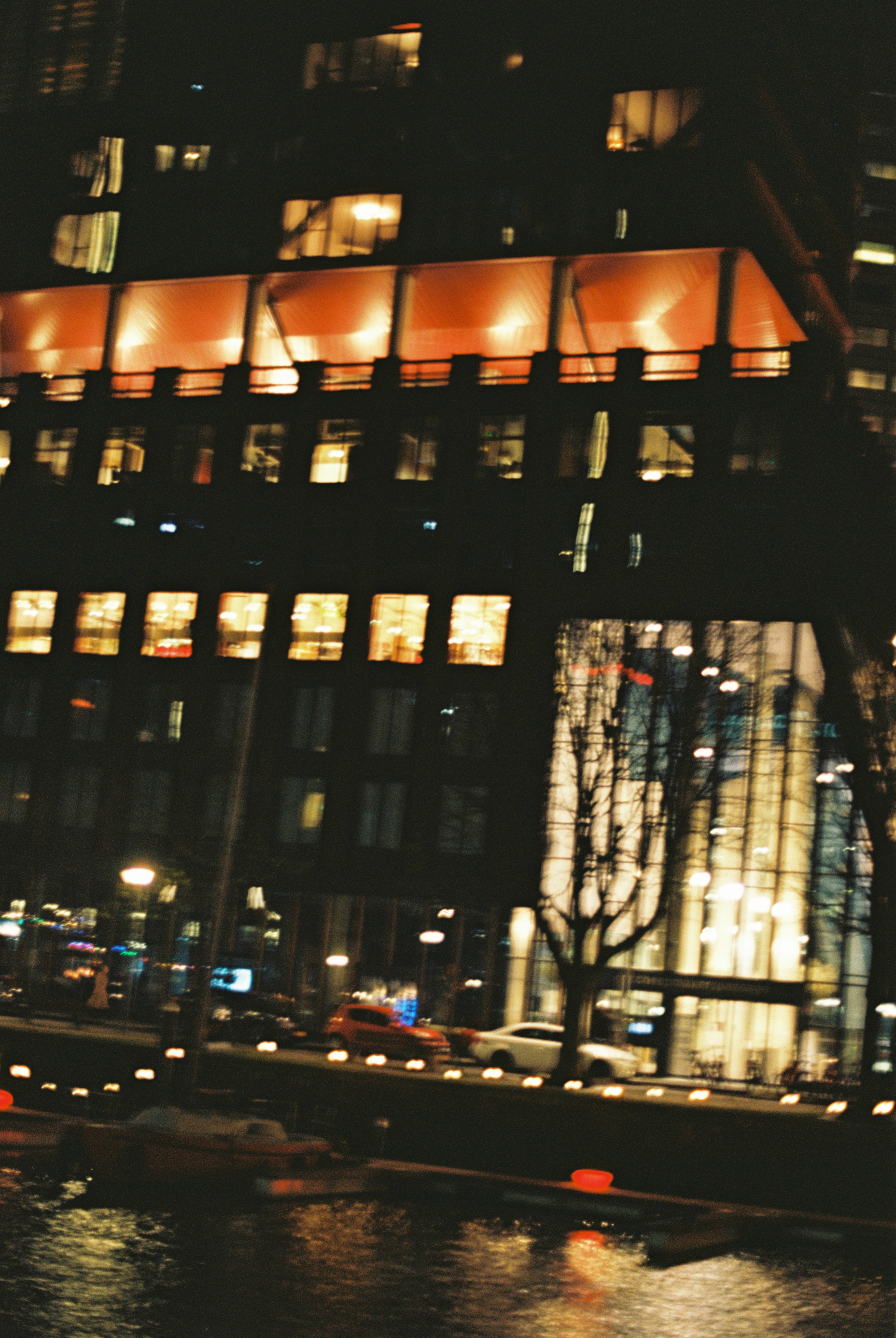 They happily chatted away. My gaze shifted between the various sources of light: pale, bright beams generated by industrious workers high above, paralleled across the darkness by the warmth spilling out from the rooms of people unwinding and conducting their sleep rituals. Lower, the waste of closed lobbies and stores lit for no one. The honey of the street lamps and illuminated mooring pooled in the water below. I closed my eyes and contemplated my skin caught in the turbulence of hot steam unfurling into the cold night air. I was thankful to be there, then.