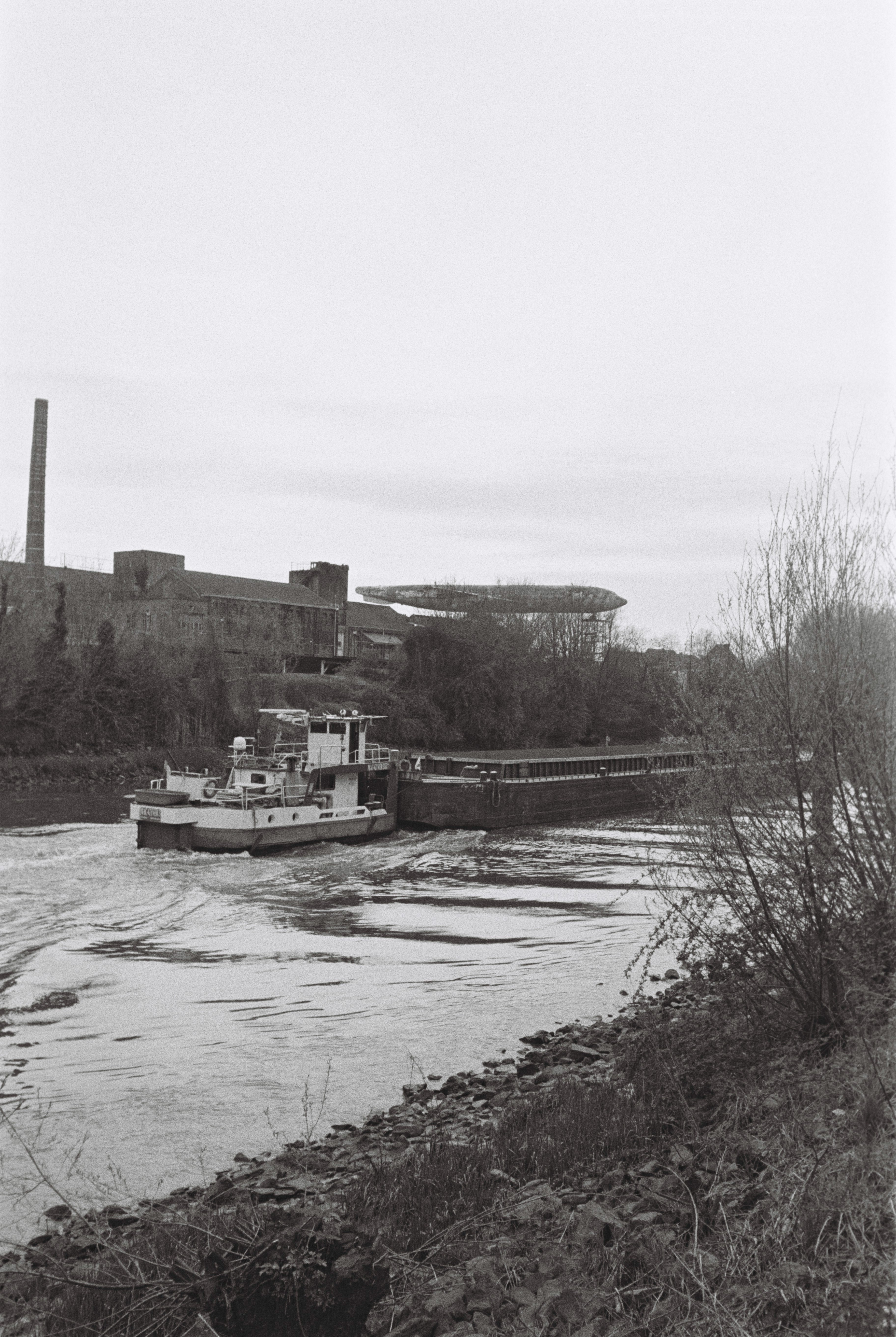 Our route took us along a quiet path along the Dender river, past the industrial border of the towns it skirted. The contrast between the fresh green grass to our right and the lifeless steel to our left was arresting, and my eyes were continually drawn to the windowless gaps between the brick and metal, black holes outlined by the mottle of rust and dirt.